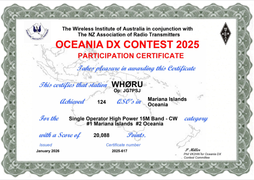 (I made also another QSOs used AH0BT in OCDX contest SSB.)