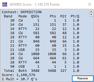 WH0RU 25/10/03 1751Z 18080.0 599 into ID TNX WH6CPT